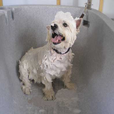 At the heart of what we do is the desire to make being groomed as pleasant and stress free as possible. A big part of this is making sure that we don’t have lines of dogs sitting in holding crates waiting anxiously to be groomed or picked up. We each work on one dog at a time from brushing out and bathing to final clip and style and when they go home we are ready to groom the next two doggy customers..